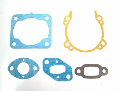 Gasket Set for Zenoah 4-Bolt RC engines. Includes gaskets for carburetor, insulator, cylinder, crankcase, and muffler.