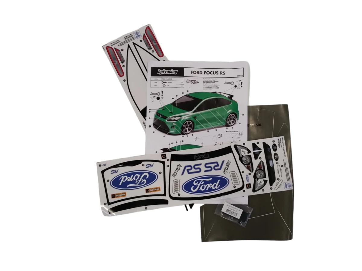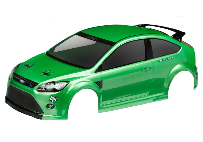 The full-size Ford Focus RS is a true powerhouse: packing over 300hp into a front-wheel drive chassis, the RS is even more powerful than the highly feared Focus ST! Our 1/10 scale version shows off the aggressive styling that tells hot hatch owners to watch out, including the front splitter, side skirts and more that really set the RS version apart from a normal family Focus. This body is molded from super-tough, extra-thick, clear polycarbonate plastic for toughness and resilience in the roughest of conditions. All HPI bodies feature clear overspray film to keep paint and marks off the outside of the body, moulded markings for easy body post drilling, pre-cut vinyl window masks, true-to-life decals and a full set of official HPI logos!Â