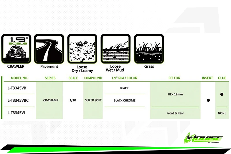 This is Scale Class 1 competition legal crawling tire from Louise RC. Real like pattern gives very authentic look to your car.