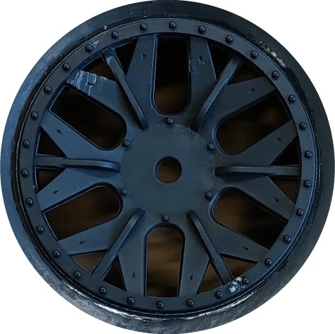 - The surface of the wheel where the tire will be glued is grinded up and degreased.