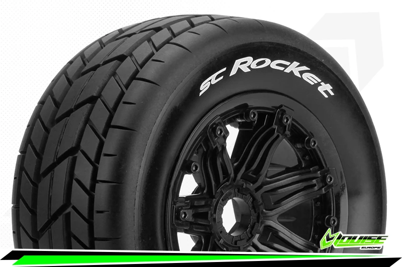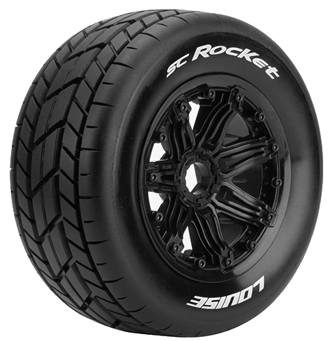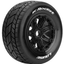 Louise Tires & Wheels SC-Rocket 1/5 Short Course Tire mounted on Black Bead-Lock Wheel – Sport – Rear – 24mm hex – 2 pieces