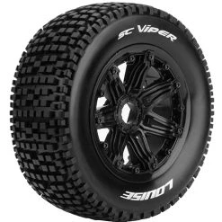 Louise Tires & Wheels SC-Viper 1/5 Short Course Tire mounted on Black Bead-Lock Wheel – Sport – Rear – 24mm hex – 2 pieces