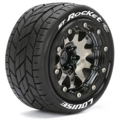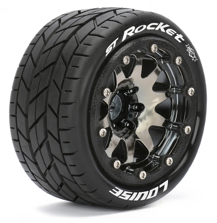 Louise ST-ROCKET Stadium Truck MFT Tires on Black-Chrome 0-Offset Bead-Lock Wheels