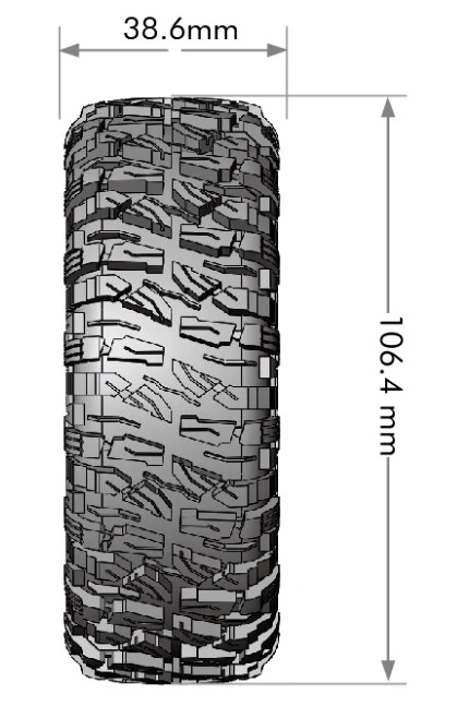 - Tire Diameter: 106.4 mm