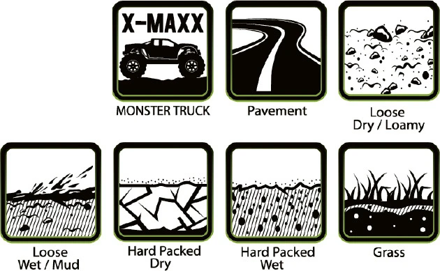 Truck tires for the high performance ARRMA Kraton. The new X-ROWDY tire has the new incorporated MFT technology that is engineered to limit tire expansion (normally refered to as “balooning”). They are mounted on a new very sturdy black nylon 7-spoke wheels with a Kraton 8S specific 24 mm hex. The X-ROWDY tire is a good allround tire for most semi-smooth surfaces including grass and hard-packed clay!