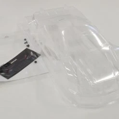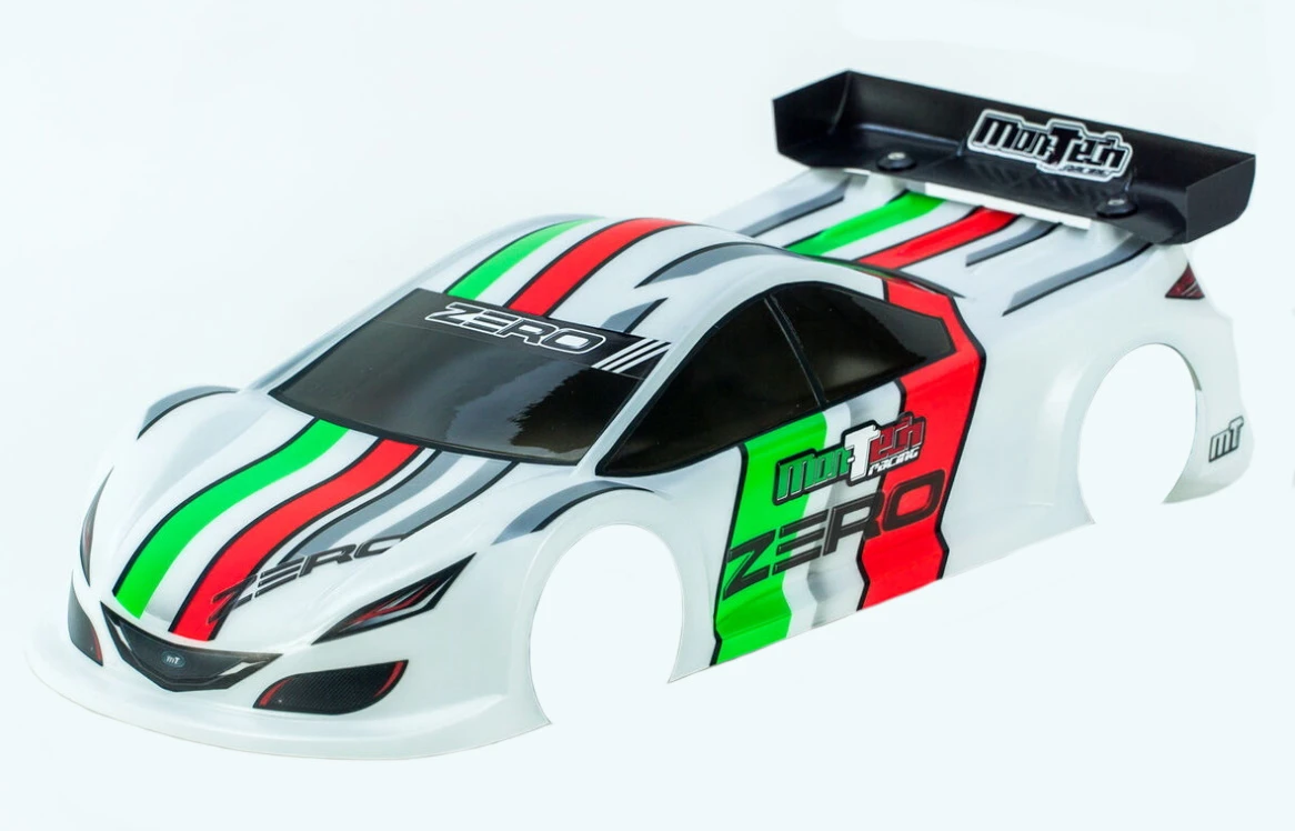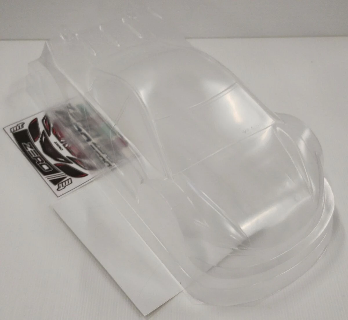This is clear unpainted lexan body from Mon-Tech Racing. Body is designed to be painted from inside and it includes window masks to cover windows during painting.  Body includes also a decal sheet and wing with mounting accessories.