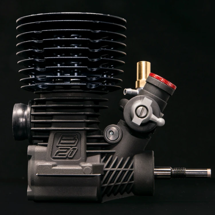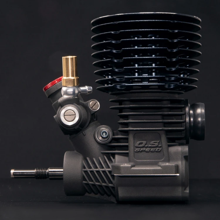 We are proudly introducing our new OS Speed B2103 Type-R and Type-S 3.5cc buggy engines, which not only have been designed newly, but also modified technically for improving their performance over excellent results at past numerous competitions. For corresponding driver’s preference also the course layout, two types B2103 Type-R and Type-S with different characteristics are in lineup. Both of them are long stroke engines φ16.27 mm x 16.80 mm. The most suitable and featured crankcase designed for buggy engine has been engraved with OS SPEED log as you can see in the pic, and the engine utilized a cooling head for the best possible cooling in high ambient temperatures. More than that, both engines come with a rear ceramic bearing and the traditional OS techniques DLC-coated crankshaft coming with tungsten balanced. For enhancing vibration reduction and preventing dust, the inner head also was adopted silicon O-ring. Both engines models are purchased available as engine only or including the T-2100SC exhaust and 85mm M2004SC manifold set.