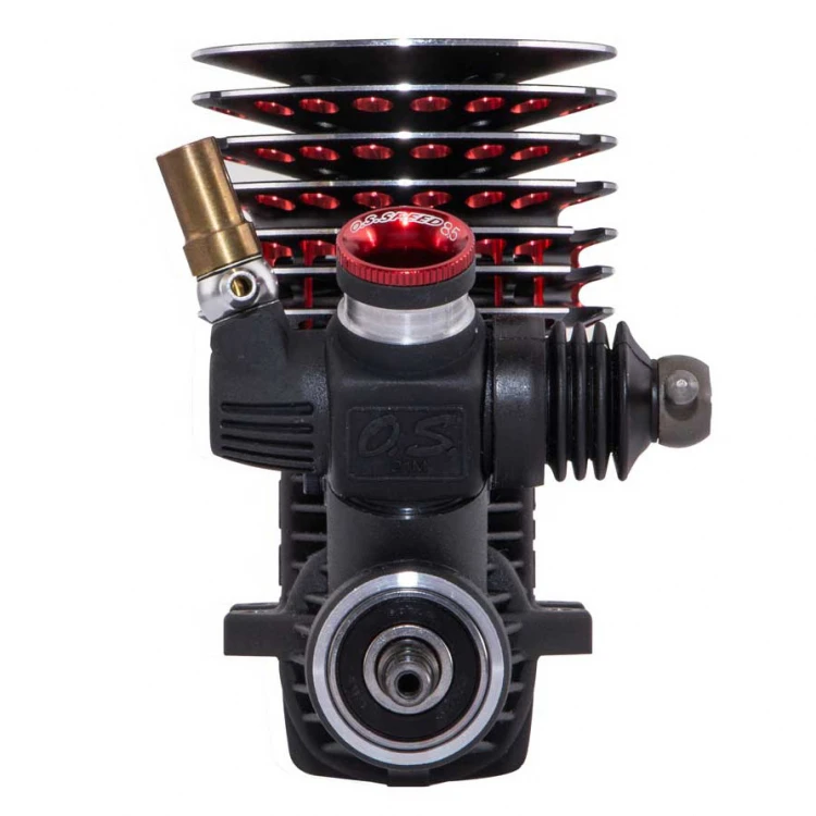 The O.S. SPEED R2104 is a factory tuned engine solely developed for 1/8 racing competition. The new engine boasts a 9-port piston liner to improve torque in low-middle power range. It produces enough power as designed even in high traction tracks. The redesigned crankshaft counter weight enables smooth power transition from low to top. Distance of each fin of the heat sink head is enhanced for better air flow for cooling and better balance. The heat sink head is anodized in two colors; black and red.