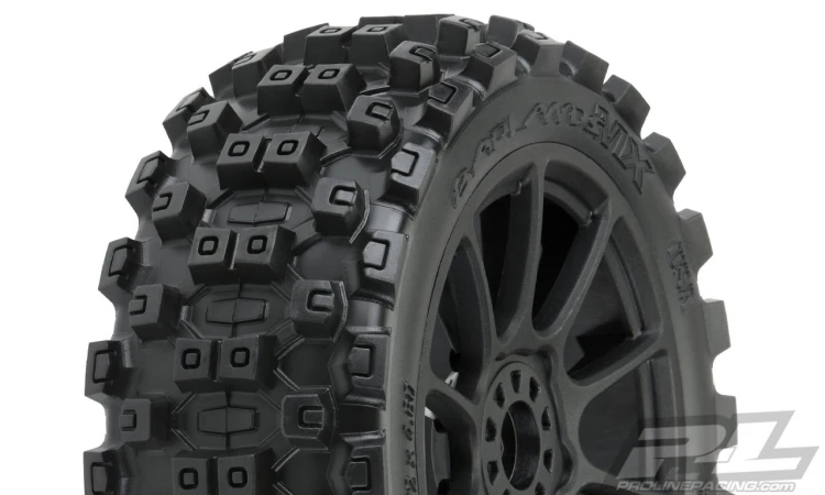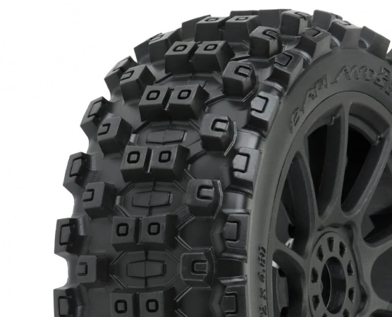 Now these iconic Badlands MX Tire is Pre-mounted on Mach 10 Black Wheels so you don’t have to worry about gluing your own tires or waiting for them to dry. All you need to do is slap them on your buggy and get to ripping up the dirt! The Mach 10 features 10 aggressive spokes that will make your off-road bash buggy look fast even sitting still. The Mach 10 wheels have a 17mm hex and are made from a single molded piece of high-quality Nylon proudly produced by Pro-Line in the USA! Be the first on your block to get the all-new Badlands MX tires – Order yours today!