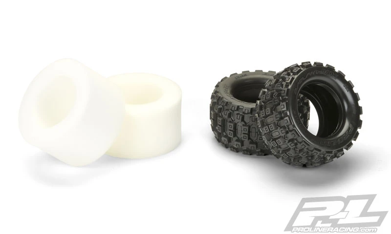 The Badlands MX28 is a true All-Terrain tyre that will find traction on any surface but is best suited for loose & loamy dirt, mud or grass. Just imagine your truck throwing up huge rooster tails with these awesome looking tyres! Compared to the previous Pro-Line Badlands tyres, you can expect even better traction, improved wear resistance and enhanced style. Be the first on your block to get the all-new Badlands MX28 tyres – Order yours today!