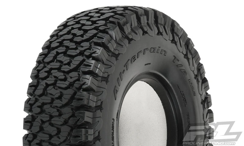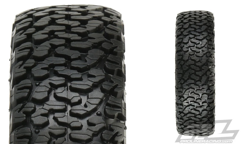 This is a pair of BFGoodrich® KO2 1.9” tires. Pro-Line is proud to announce a partnership with the leading full-size Off-Road tire manufacturer – BFGoodrich®! This collaboration started with the introduction of the full-race BFGoodrich® Baja T/A KR2 tires and continues with the extremely popular BFGoodrich® All-Terrain KO2 tires available in Pro-Line’s legendary G8 compound! Details from the full-size race All-Terrain tire have been recreated to give your truck the ultimate in scale look and multi-surface performance. Known for extreme off-road traction and awesome street performance in the full scale world, the BFGoodrich® All-Terrain KO2 tire features an iconic layout of densely packed tread blocks with a large number of tread sipes that will give your rig improved traction on any terrain! Pro-Line engineers decided that the KO2 tire needed to be 4.35” tall x 1.42” wide for the perfect balance of Scale looks and performance! The all-new BFGoodrich® All-Terrain KO2 1.9” tires from Pro-Line are a must have. Get yours today!