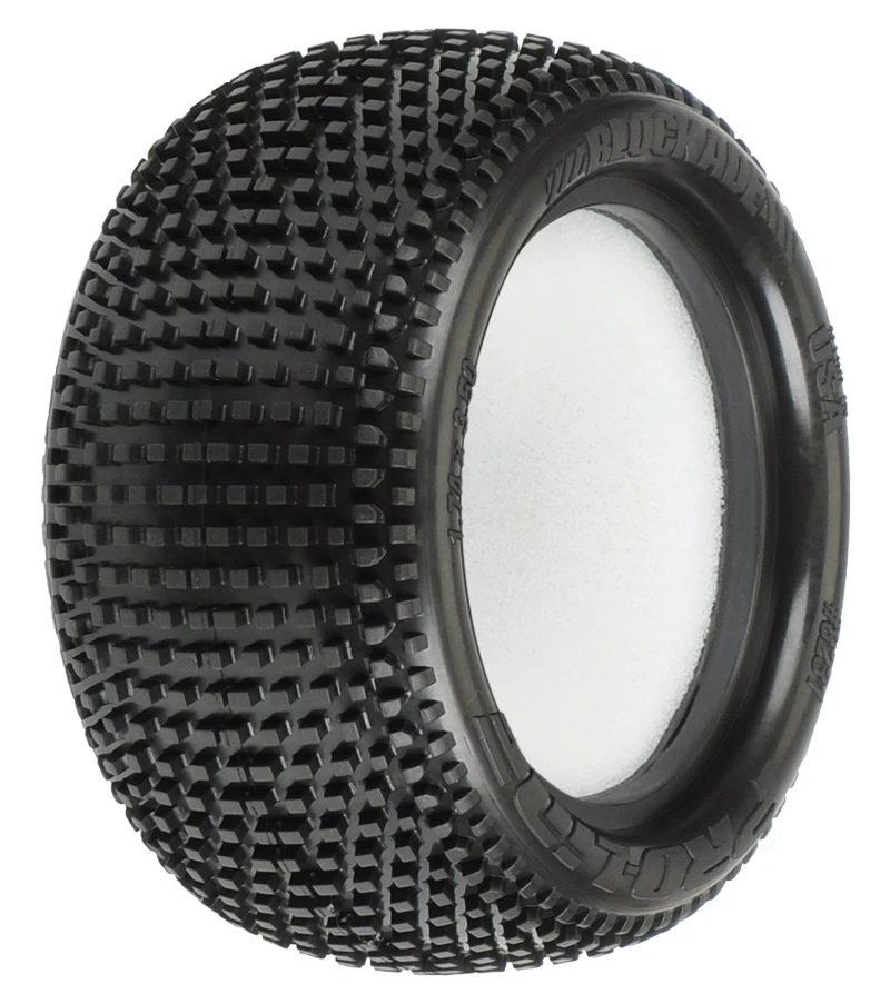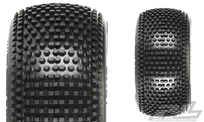 This is a pair of Blockade Buggy Rear Tires. Pro-Line is bringing the incredibly successful 1/8 Buggy Blockade tire to 1/10 Buggy! If you find yourself racing in loose, dusty or hard-packed conditions with your 1/10 Buggy – you NEED a set of Blockades! The Revolutionary tread design features large lugs for class leading tread life, perfectly balanced tread spacing for maximum forward bite and uniquely blended side tread that reduces the edginess found in other race tires. This tire will give your buggy qualifying speed with tread life capable of outlasting the competition. Pro-Line’s Blockade is the new must-have 1/10 Buggy Race tire and will dominate your local track. The Blockade – The latest way that Pro-Line is Racing to Bring You The Best!