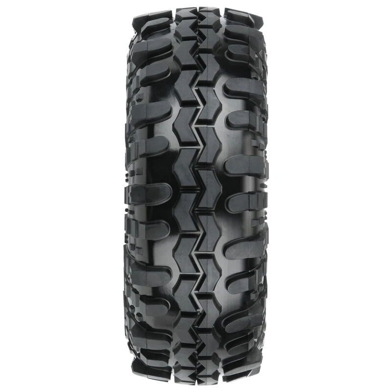 The full-size Super Swamper® TSL SX features the ultimate tire tread design by pairing the distinctive chevron tread pattern with the famous, trademarked, and patented Interco® TSL (three-stage lug) tread design. TSL is a lug pattern with short, intermediate, and long lugs that are each uniquely arranged, proportioned and spaced which allow them to bite quickly and self-clean rapidly. Each of these details has been faithfully recreated in Class 0 size to fit your 1.55″ wheel. Just like the full-size Interco® Super Swamper® TSL SX tires, Pro-Line tires are proudly Made in the USA!