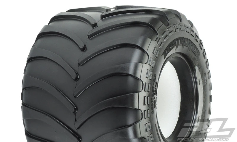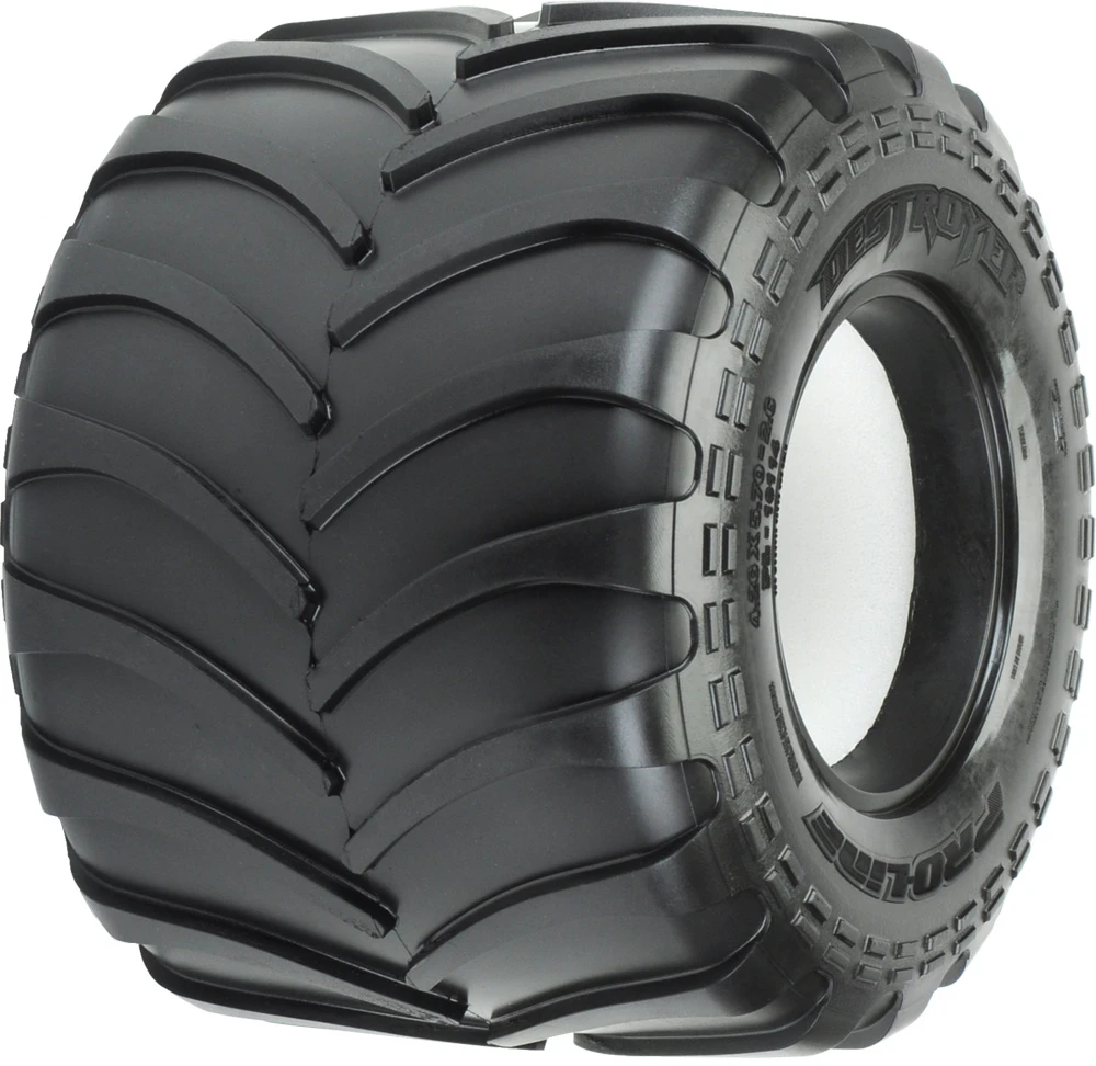 This is a Destroyer 2.6? Solid Axle Monster Tire.Pro-Line is proud to introduce an all-new tire specifically designedfor Scale Solid Axle Monster Trucks: the Destroyer!! The Destroyer ismade from Pro-Line?s Legendary M3 Race Rubber for Maximum DestructiveTraction on Dirt or Carpet. Similar to full size Monster TruckTires the Destroyer features an alternating deep-grooved chevron styletread pattern for incredible forward traction while maintaining a scaleappearance. The overall size and width of the Destroyer tire has beenfinely tuned to be lightweight and agile, which makes it ideal forracing applications. The Destroyer includes soft white foam inserts forultra-plush landings, greatly improving the handling and performanceof your Solid Axle Monster Truck. The Destroyer is Destined to becomethe Go-To Tire for Solid Axle Monster Trucks! Get yours Today!!