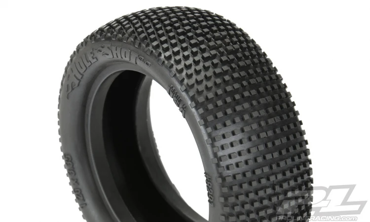 This is a pair of Hole Shot 3.0 2.2″ Buggy 4WD Front Tires. Pro-Line’s innovation team is proud to bring you the Hole Shot 3.0 front tire featuring the latest generation race tire carcass for maximum performance combined with longer-lasting waterproof closed cell foam included. The unique mini-pin Hole Shot design has remained virtually unchanged since it has already proven to provide the optimum level of traction in dusty, hard-packed, and grooved conditions.
