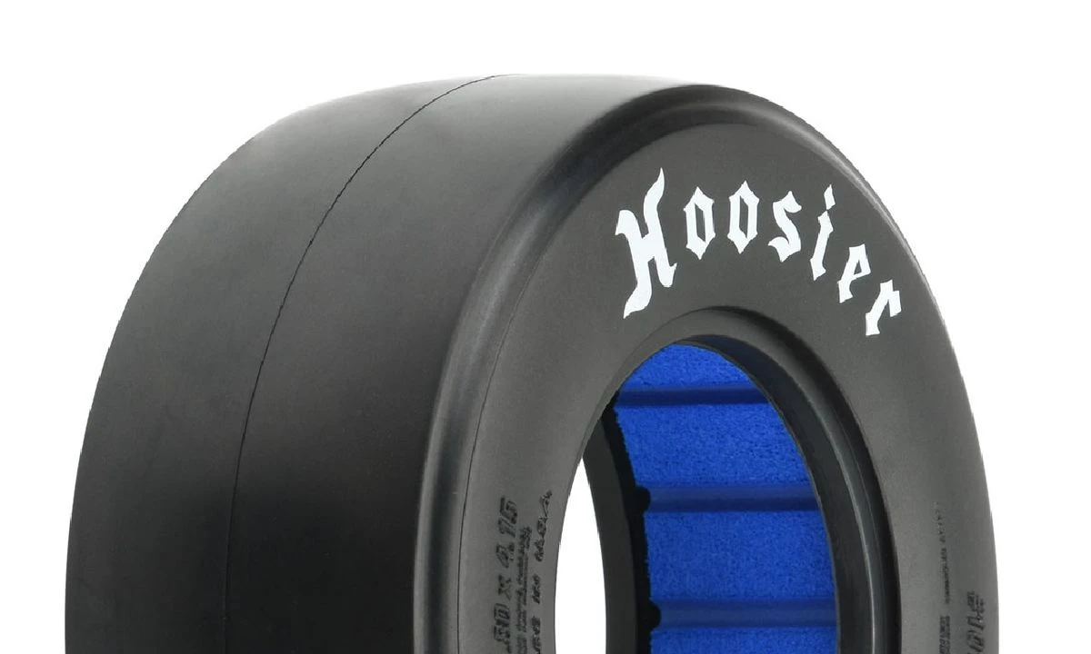 This is a pair of Hoosier Drag Slick SC Rear Tires. Fully licensed by Hoosier, these Pro-Line Hoosier Drag Slick SC tires were specifically made for no-prep Drag racing! Hoosier is well-known for their success in full-scale drag racing. Now you can have your very own set of scale Hoosier Drag Slicks for your no-prep SC drag racing machine! The Hoosier Drag Slick tires not only look amazingly Scale, they perform just like the full-size tires, so you can have realistic style and performance on your SC Drag car.Â
