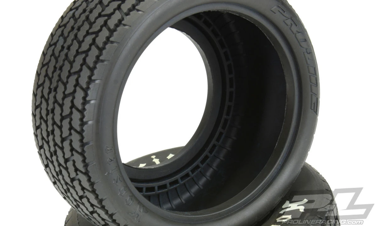 Fully licensed by Hoosier, these Pro-Line Hoosier G60 SC tyres were specifically made for Dirt Oval racing! The Hoosier G60 SC tread pattern not only looks amazingly Scale but the tyre also offers the same High-Performance as full-size tyres, so you can have realistic style and performance on your SC Mod. And just like the full-size Hoosier tyres, these G60 SC tyres proudly display White Hoosier Logos on the sidewall! To make it easy on race technical inspection during spec races, Pro-Line has molded in Compound Identifiers into the Sidewall of each tire. The Hoosier G60 SC features rounded side tread for consistent slide action that will not catch ruts and flip your truck when you throw it up into the corner. The Hoosier G60 tread pattern creates great forward grip combined with long lasting and consistent performance that is easy on your pocket book. The Hoosier G60 SC and every other tyre that Pro-Line makes is proudly Made in the USA! Throw down the inside pass on your racing buddies with Pro-Line’s all-new Hoosier G60 SC Dirt Oval SC Mod tyre!Â
