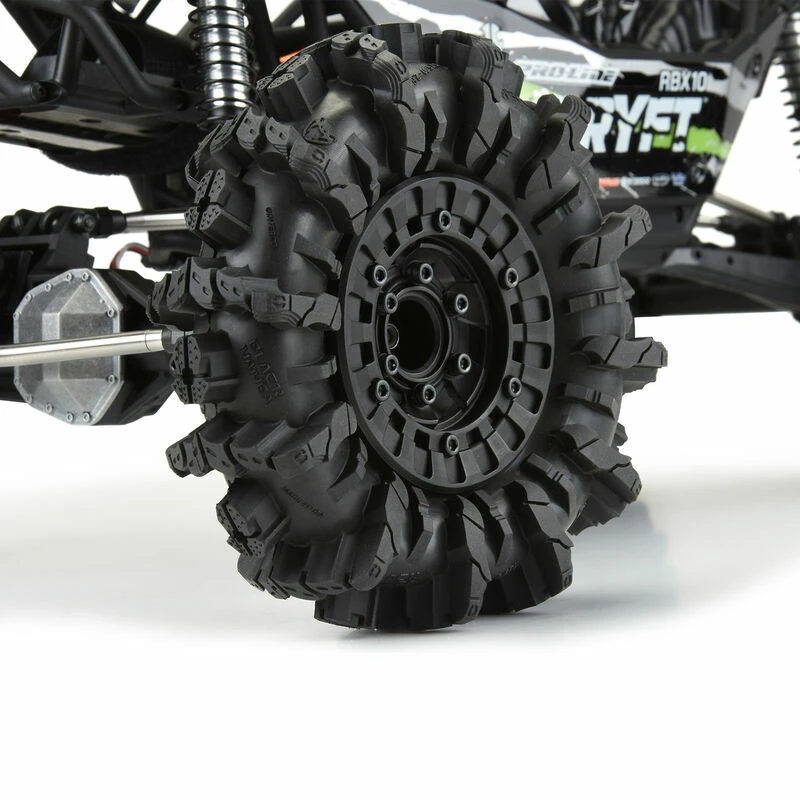 This is a pair of Interco Black Mamba 2.6″ Mud Truck Tires. Pro-Line is proud to announce fully licensed Interco Black Mamba 2.6″ tires specifically designed for extreme mud truck action! These massive 6″ tall x 1.86″ wide tires are perfect if you are looking to do some Mud Bogging with your rig. Transform your Black Mamba tires into an even narrower and more extreme mud tire when you combine them with Pro-Line’s Vice CrushLock 2.6″ Bead-Loc wheels PL2789-03).