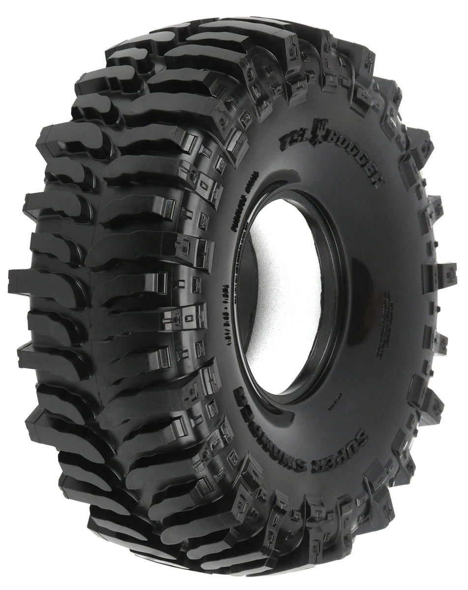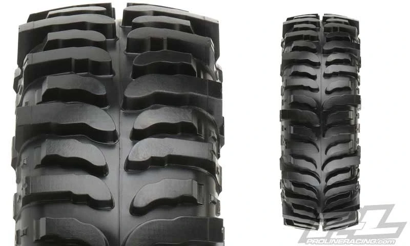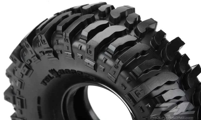 These massive 5.4″ tall x 1.91″ wide tires are perfect for guys looking to do some Mud Bogging with their rigs or for recreating a beloved full size truck in perfect scale detail. Pro-Line’s officially licensed Interco® Bogger® tires feature a directional tread pattern with the patented Interco TSL (three stage lug) design just like the full-size tires. The new Bogger® tires are aggressive in stock form and are also extremely versatile and easily modified for even more mud flinging performance. They come in Pro-Line’s legendary G8 compound, so you know they will perform beyond expectations right out of the package. Get your own set of fully licensed Interco® Bogger® tires from Pro-Line today!