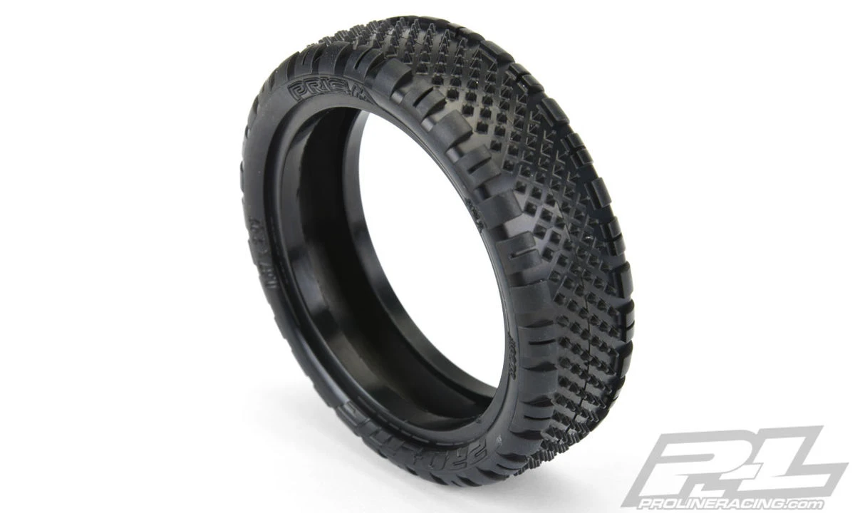 The pins on the Prism are slightly smaller than the original Pin Point tire but there are many more of them, which results in faster and more consistent lap times. The Prism pins have been positioned with the knife edge pointed front to back and side to side for maximum grip and stay sharp even as they wear down. The Prism 2wd Front tire perfectly pairs with Pro-Line’s Prism 2.0 Rear tire for ideal carpet racing performance. The Prism tire is another leap forward in the hot carpet racing scene; be the first with the fastest carpet tire yet – Pro-Line’s Prism 2wd Front!