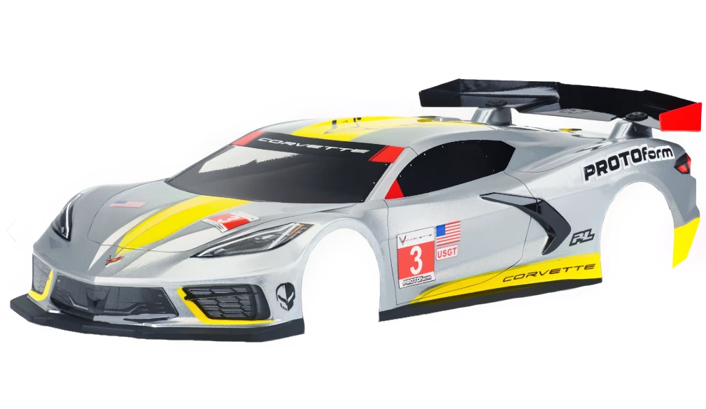 From the moment rumors surfaced that Chevy® was reinventing the legendary Corvette™ into a mid-engine supercar, all of us at PROTOform were waiting with bated breath to see what our future USGT body would look like. PROTOform is now proud to bring one of the most anticipated cars Chevrolet® has ever built to 1:10 scale with their release of the Corvette™ C8 body for 190mm touring cars.
