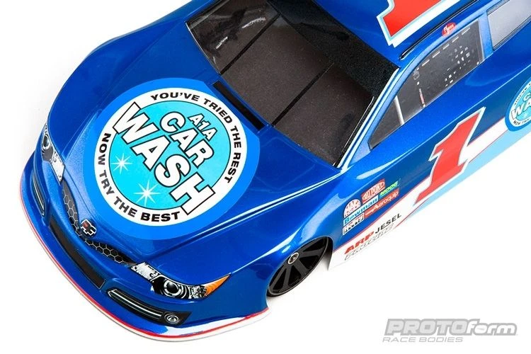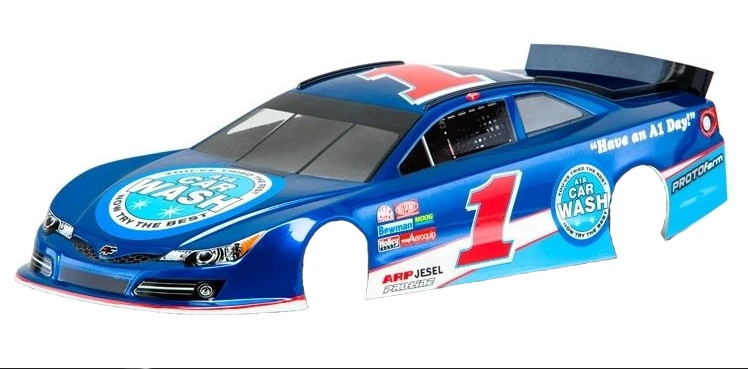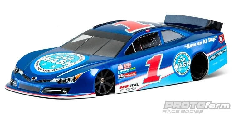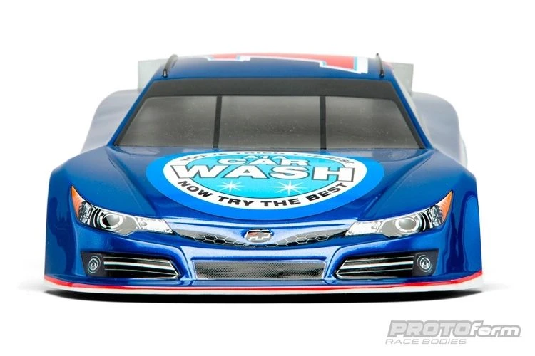 The all-new G6-T race body reflects all the details of the real racers while adapting it for the ultra-high downforce demands of today’s carpet oval race cars. The G6-T features ample wedge built right into the body, but can also be adjusted with different trimming angles for stock classes.The G6-T is produced with the best in quality .030 polycarbonate. It’s equipped with spoiler mounting hardware, protective film, window masks and a decal sheet. This body will also fit most popular 200mm sedan chassis.