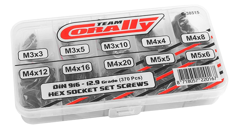 Team Corally – Screw Set – Set Screws – M3 – M4 – M5 – DIN 916 – Steel Black – 12.9 Grade – 10 Sizes – 370 pcs