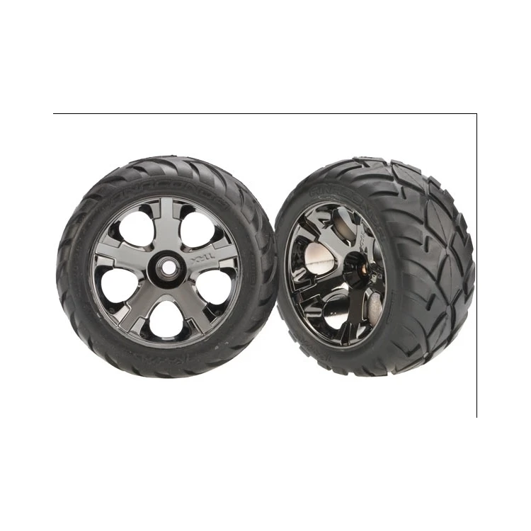 Traxxas Anaconda Tyres Pre-Glued On Black Chrome Nitro Front Wheels (2)