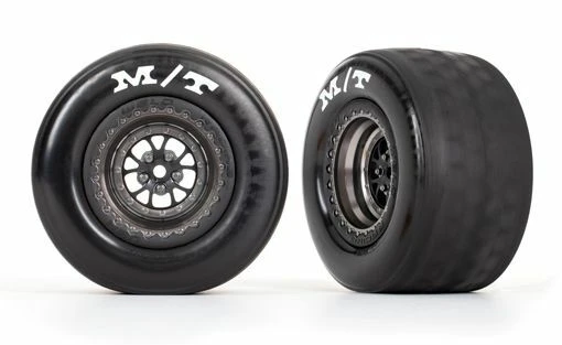 Wide Mickey Thompson drag slicks come pre-glued to satin black Weld wheels to replicate the legendary look and performance of the real thing. Developed with extensive testing, the slicks’ unique compound is formulated to balance long tire life with maximum traction.