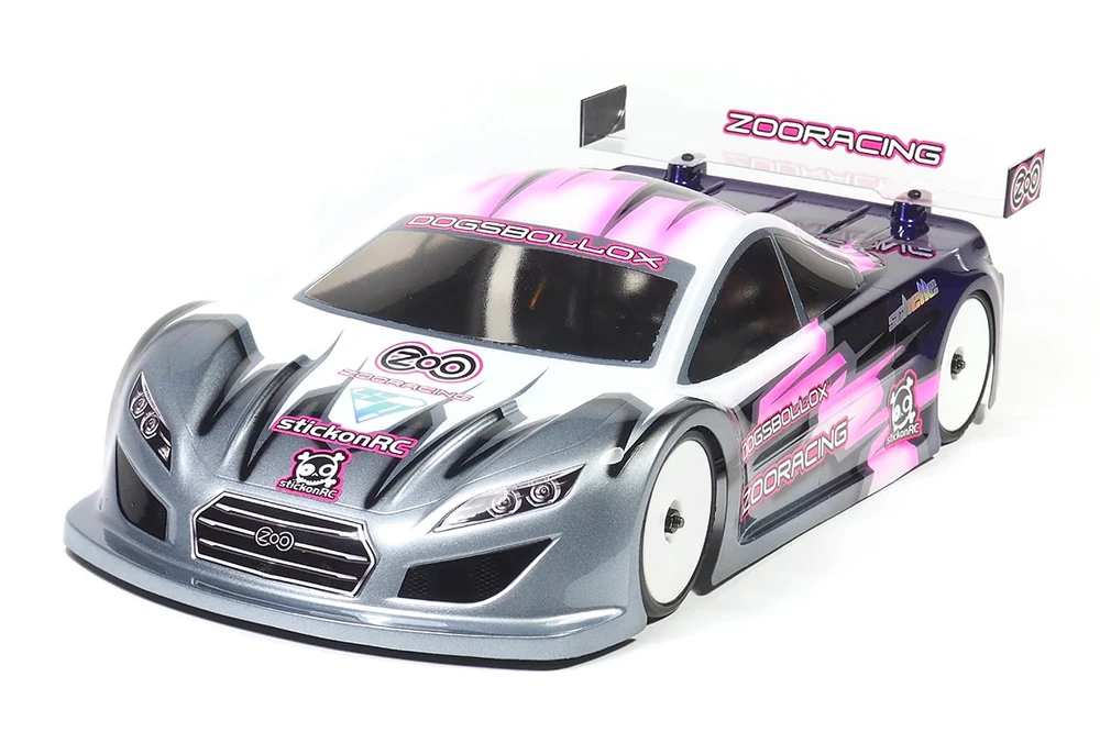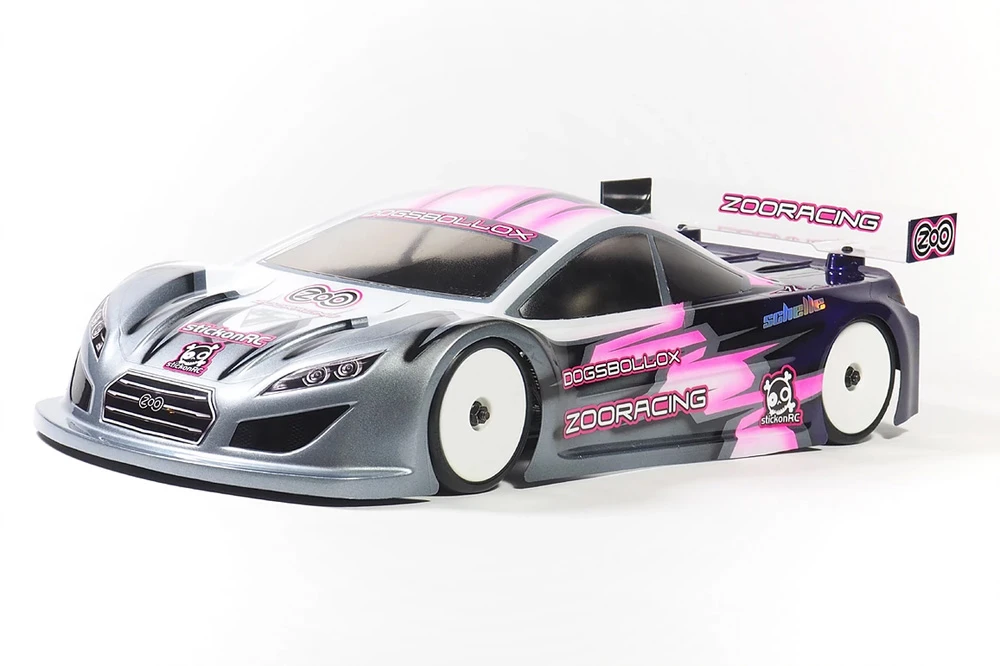 The DogsBollox body shell for 190mm touring cars is ZooRacing’s third touring car body shell. Developed as an outright low centre of gravity body the lid features a 6mm lower trunk section – including the rear wing – for greater corning speeds, a more agile handling and less weight distribution changes. In addition to the low rear end the body also offers a super low front end which further adds to the aggressive LCG aero package. When run on high to very high-grip surfaces drivers will experience a lot less traction rolling issues even when using the body in the new 90g ETS weight rule configuration.